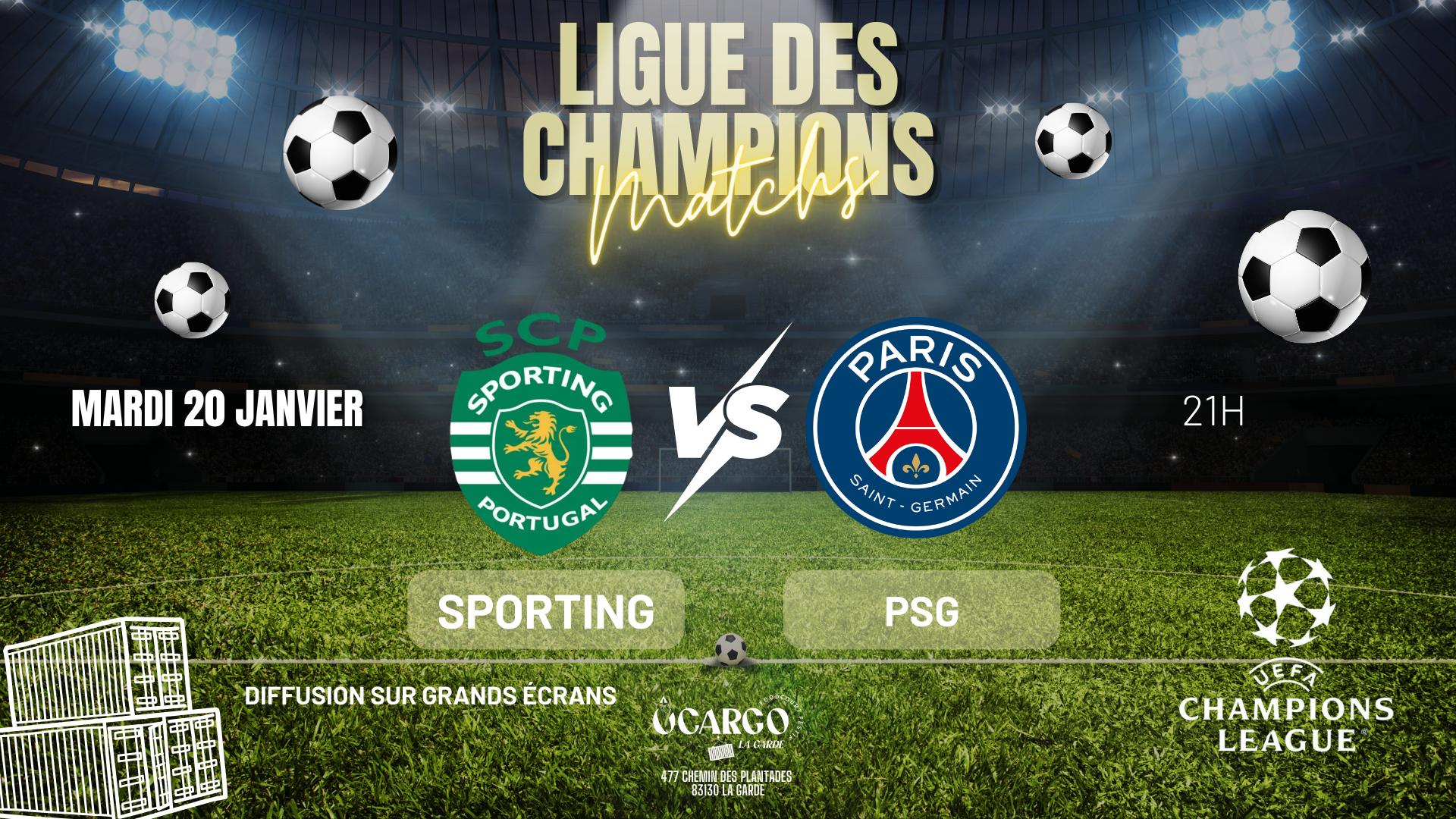 ⚽ LIGUE DES CHAMPIONS ⚽ Ce soir, ne manquez pas le choc de la Ligue des Champions ! 🎉 💥SPORTING - PARIS SG💥 21H Nous diffusons le match sur grand écran intérieur et extérieur pour que vous puissiez suivre chaque action dans une ambiance de folie ! 📺🌟 Venez encourager votre équipe dans une atmosphère [...] |