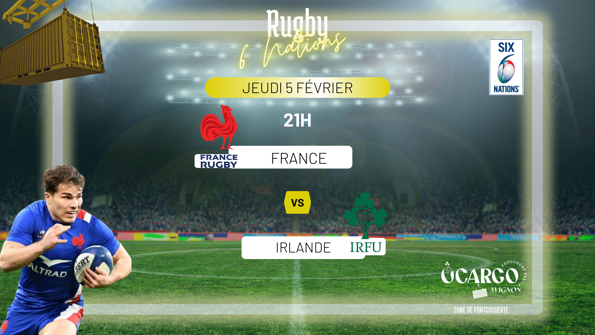 🏉6 NATIONS🏉 Ne manquez pas le choc des 6 Nations ! 🎉 💥 FRANCE - IRLANDE 💥 Nous diffusons le match sur grand écran pour que vous puissiez suivre chaque action dans une ambiance de folie ! 📺🌟 Venez voir le match dans une atmosphère festive et conviviale 😊 |