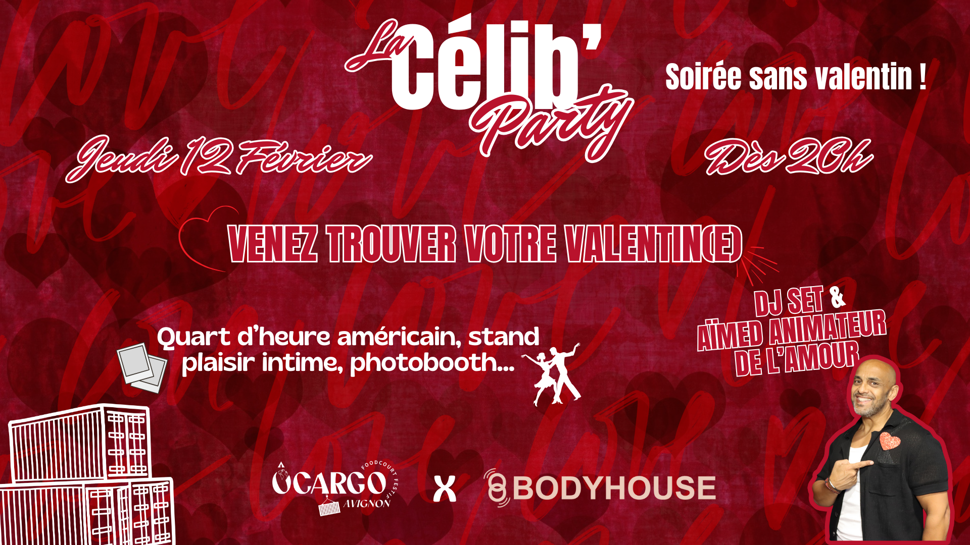 SOIRÉE CÉLIBATAIRE - EN COLLAB AVEC BODYHOUSE Célibataire ? Envie de passer une soirée différente, drôle et décomplexée ? Chez Ôcargo, on secoue les cocktails… et les rencontres ! AU PROGRAMME : DJ set pour faire monter l’ambiance Animations et jeux pour briser la glace en douceur avec notre animateur Aïmed ! Photobooth Messagerie de [...] |