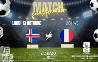 ⚽ QUALIF COUPE DU MONDE 2026 ⚽ Ne manquez pas le choc entre l’ISLANDE et la FRANCE à 20H45 ! 🎉 Nous diffusons le match sur grand écran ( sans le son) pour que vous puissiez suivre chaque action dans une ambiance de folie ! 📺🌟 Venez encourager votre équipe dans une atmosphère festive et conviviale. 🍔FOOD – BAR🍸