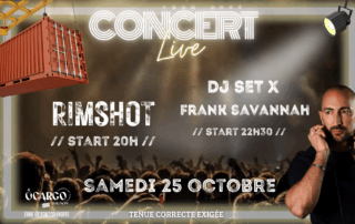 🎸 SOIRÉE CONCERT LIVE & DJ 🎧 Préparez-vous pour une soirée inoubliable ! Ce soir, rejoignez-nous dès 20h pour un Concert Live avec le groupe RIMSHOT, un groupe pop-rock énergique qui va enflammer la scène ! 🎶🔥 Ensuite, à partir de 22h30, laissez-vous emporter par les beats dynamiques de DJ FRANK SAVANNAH pour une DJ Party mémorable ! 💃🕺 Rassemblez vos amis et vivez une soirée pleine de musique, de danse et de bonne humeur ! 🎵🎉 Et n’oubliez pas, tenue correcte exigée ! 👕
