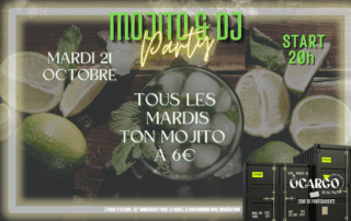 🍸 SOIRÉE MOJITO 🍸 Rafraîchissez votre soirée avec un bon Mojito ! 🌿 Ce soir, rejoignez-nous dès 20h pour une Soirée Mojito à ne pas manquer ! Pour seulement 6€, dégustez votre Mojito préféré, avec plusieurs saveurs au choix pour satisfaire toutes les envies. 🍓🥭 Que vous soyez team classique, fruité, ou exotique, il y en aura pour tous les goûts ! Venez avec vos amis, détendez-vous, et profitez dans une ambiance parfaite. 🎉