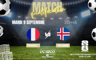MATCH DE QUALIFICATION Ce soir, place au duel décisif : France – Islande ! Diffusion sur grand écran ( sans le son ) dans une ambiance survoltée ! Venez vibrer, chanter et encourager les Bleus dans une atmosphère festive et conviviale Rendez-vous ce soir chez Ôcargo !