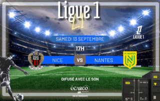 LIGUE 1 Cette après-midi, ne manquez pas le choc de la Ligue 1 ! NICE - NANTES Nous diffusons le match avec le son et sur grand écran pour que vous puissiez suivre chaque action dans une ambiance de folie ! Venez encourager votre équipe dans une atmosphère festive et conviviale À tout à l’heure !