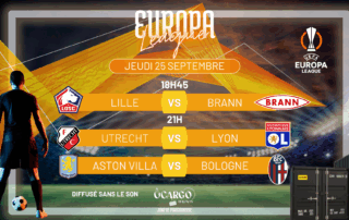 ⚽ EUROPA LEAGUE ⚽Ce soir, ne manquez pas le choc de l’Europa League ! 🎉💥LILLE – BRANN💥à 18h45 💥UTRECHT – LYON💥à 21h 💥ASTON VILLA – BOLOGNE💥à 21hNous diffusons le match sur grand écran pour que vous puissiez suivre chaque action dans une ambiance de folie ! 📺🌟Venez encourager votre équipe dans une atmosphère festive et conviviale 😊À ce soir !
