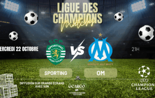 ⚽ LIGUE DES CHAMPIONS ⚽ Ne manquez pas le choc entre le Sporting et l'OM ! 🎉 Nous diffusons le match sur grand écran intérieur et extérieur pour que vous puissiez suivre chaque action dans une ambiance de folie ! 📺🌟 Venez encourager votre équipe dans une atmosphère festive et conviviale. 🍔FOOD - BAR🍸