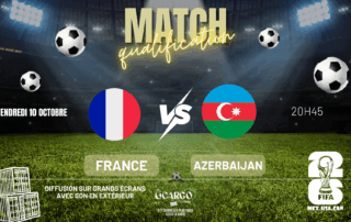 ⚽ QUALIF COUPE DU MONDE 2026 ⚽ Ne manquez pas le choc entre la France et L'Azerbaijan à 20h45 ! 🎉 Nous diffusons le match sur grand écran intérieur et extérieur pour que vous puissiez suivre chaque action dans une ambiance de folie ! 📺🌟 Venez encourager votre équipe dans une atmosphère festive et conviviale. 🍔FOOD - BAR🍸