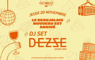 Soirée Beaujolais Nouveau chez ÔCargo ÔCargo vous invite à découvrir le tout nouveau millésime du Beaujolais Nouveau ! Une occasion parfaite pour se retrouver entre amis ou collègues et profiter d’un moment chaleureux autour de ce vin incontournable. Pour une ambiance encore plus festive, DJ DEZZE sera aux platines, et une animation spéciale caricature sera au rendez-vous pour pimenter la soirée. Ne manquez pas cet événement convivial et gourmand ! 🍔FOOD AND DRINK🍺