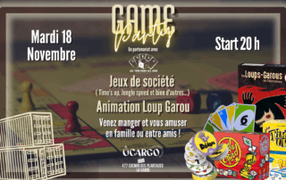 🎲SOIRÉE JEUX🎲 Venez vous retrouver entre amis ou en famille autour d'un bon jeux de société ! En partenariat avec l’association « Les yeux dans les jeux ».🎲 Profitez d’une multitude de jeux de société (Time’s Up, Jungle Speed, Twister et bien d’autres) et d’une animation Loup Garou. 😋