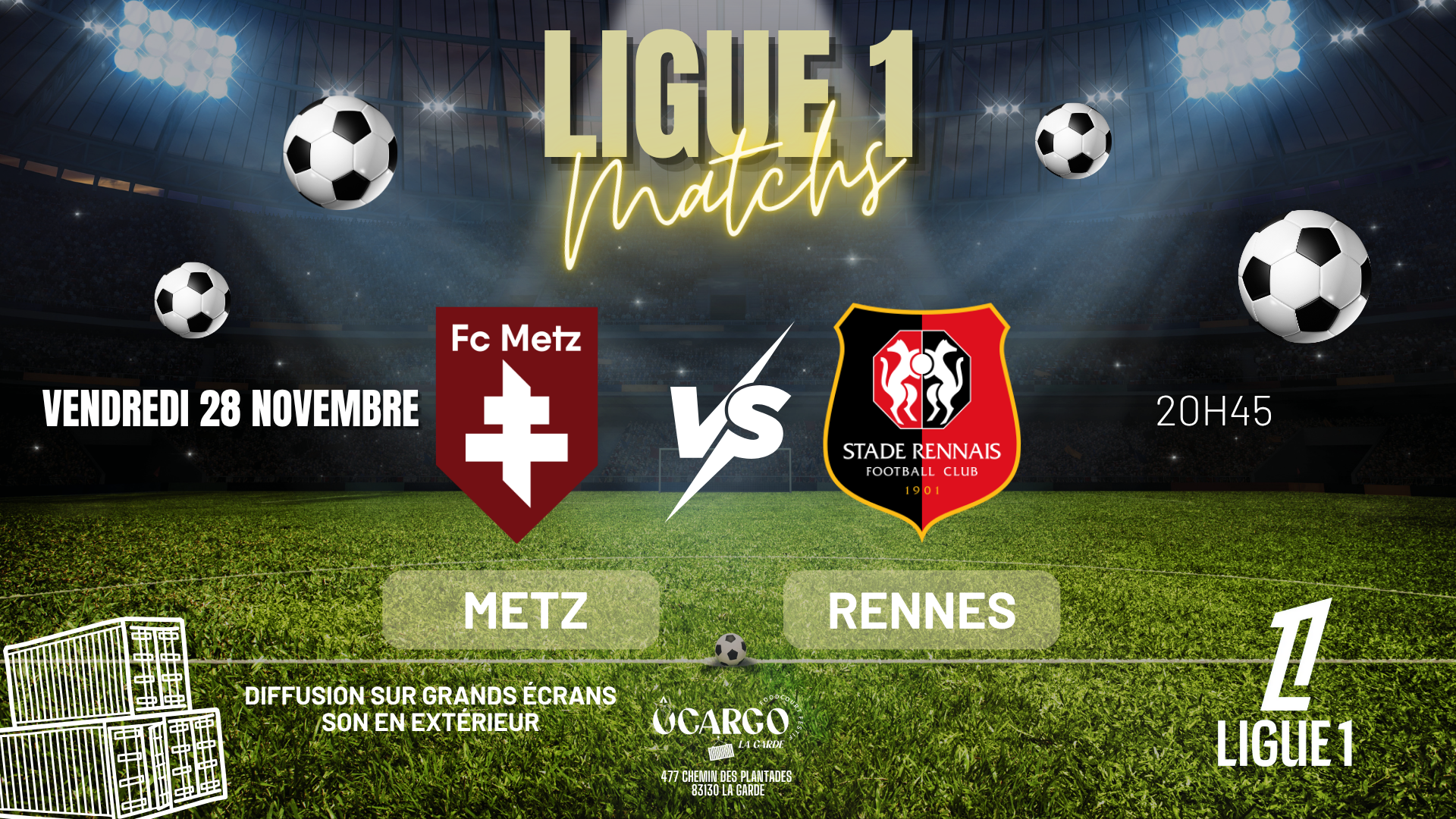 ⚽ LIGUE 1 ⚽ Ce soir, ne manquez pas le choc de la Ligue 1 ! 🎉 💥METZ - RENNES 💥 Nous diffusons le match sur grand écran intérieur et extérieur pour que vous puissiez suivre chaque action dans une ambiance de folie ! 📺🌟 Venez encourager votre équipe dans une atmosphère festive et conviviale. [...]