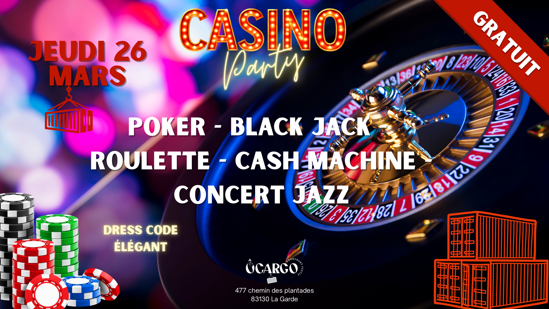 La Garde ÔCargo Food Court - 477 chemin des plantades, La Garde, var, FranceSoirée Casino à ÔCargo – Jeudi 26 Mars ! ÔCargo se transforme en casino glamour pour une soirée exceptionnelle avec entrée gratuite ! Dress code Élégant & Ambiance Jazz Sors ta plus belle tenue et viens briller sous les lumières de Las Vegas. Jeux & cadeaux Poker, roulette, blackjack… tente ta chance et repars avec [...]