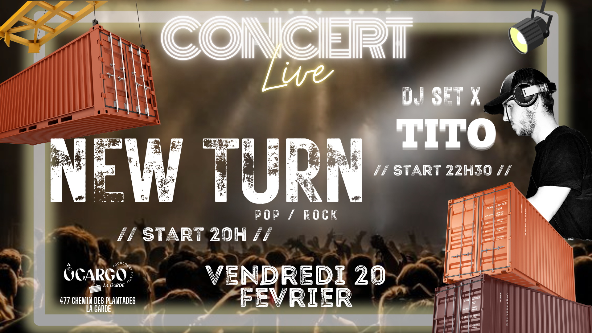 La Garde ÔCargo Food Court - 477 chemin des plantades, La Garde, var, France🎸 SOIRÉE CONCERT LIVE & DJ 🎧 Préparez-vous pour une soirée inoubliable ! Ce soir, rejoignez-nous dès 20h pour un Concert Live avec le groupe NEW TURN, un groupe pop-rock énergique qui va enflammer la scène ! 🎶🔥 Ensuite, à partir de 22h30 et jusqu’à 1h, laissez-vous emporter par les beats dynamiques de DJ TITO pour une [...]