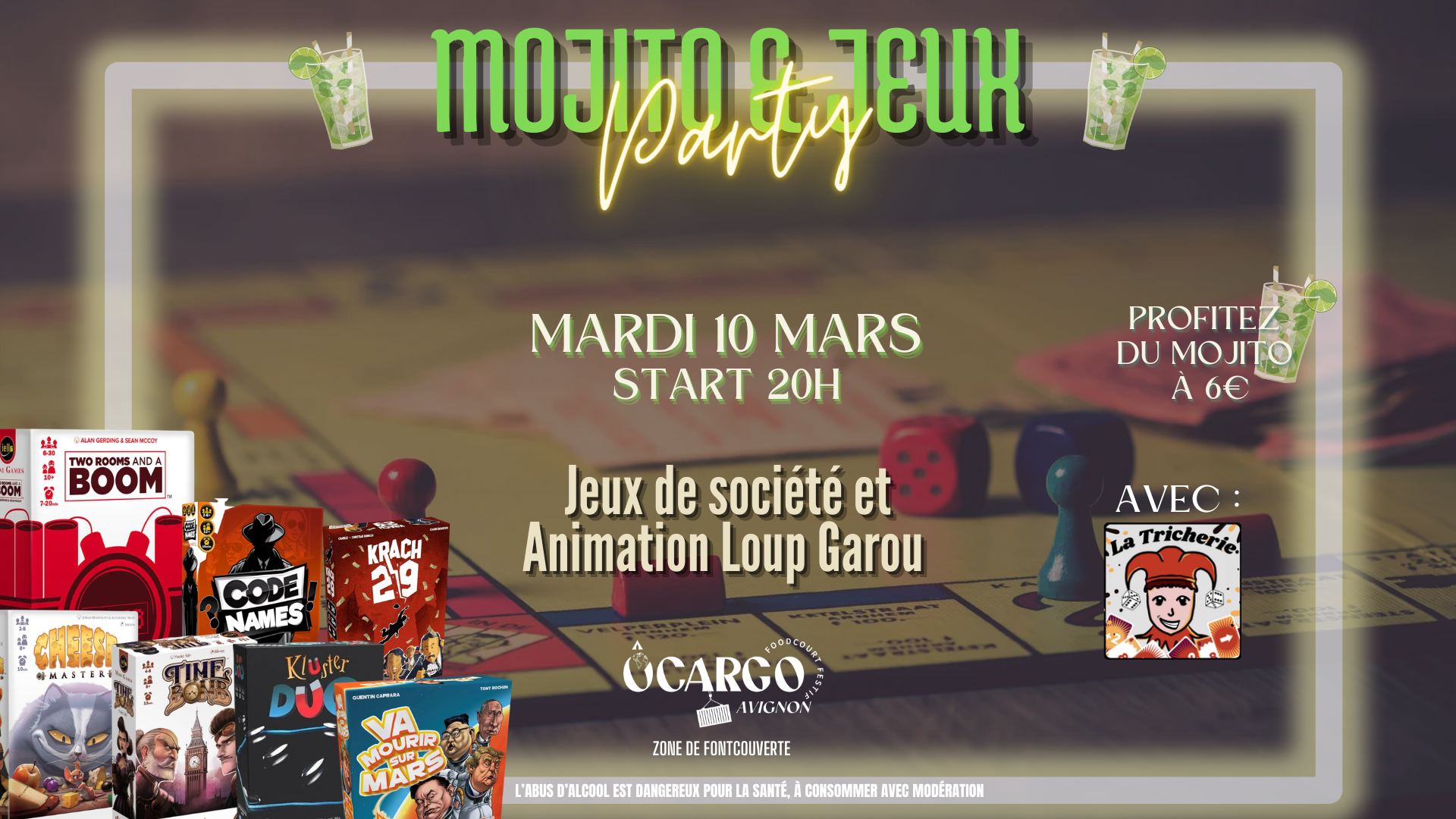 Avignon Avignon, France🎲SOIRÉE JEUX🎲 Venez vous retrouver entre amis ou en famille autour d'un bon jeu de société ! En partenariat avec « La Tricherie ».🎲 Profitez d’une multitude de jeux de société (Time’s Up, Jungle Speed, Twister et bien d’autres) et d’une animation Loup Garou. 😋 Et pour couronner le tout, comme chaque mardi profitez de [...]
